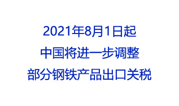 • 2021年8月1日起中國將進一步調(diào)整部分鋼鐵產(chǎn)品出口關(guān)稅